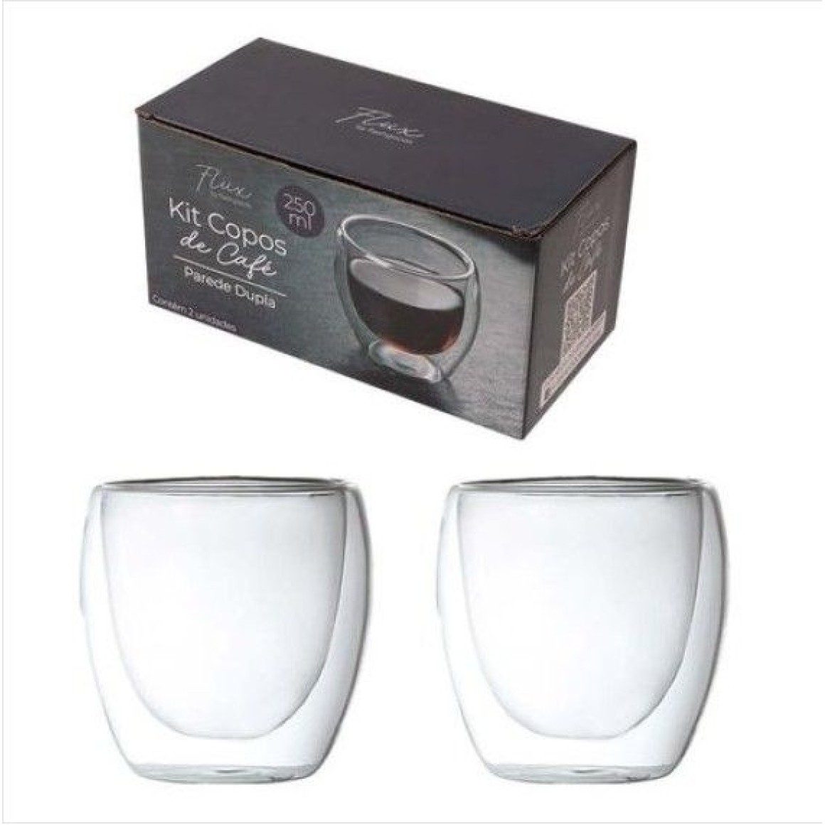 JOGO 2 COPOS VIDRO 250ML PAREDE DUPLA