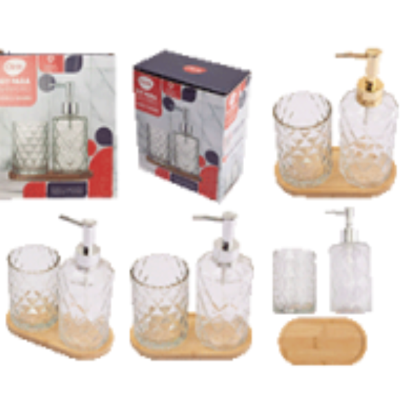 KIT 3 BANHEIRO VIDRO CLEAR C/BAND BAMBU 3-MODELOS
