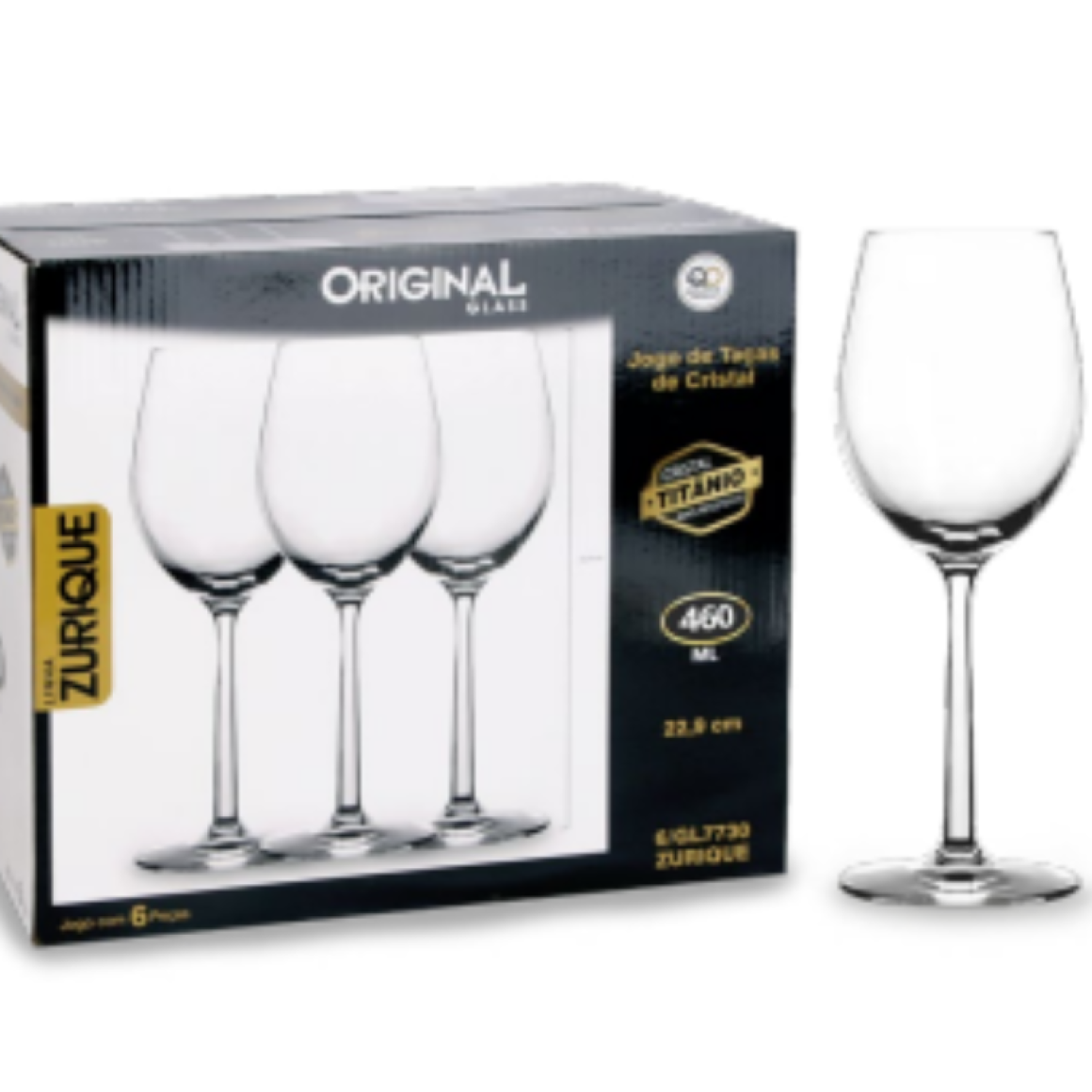 JOGO 6 TACA VIDRO 400ML TITANIO ZURIQUE