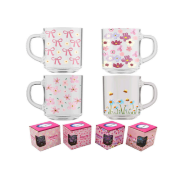 CANECA VIDRO 200ML FLORES C/CX
