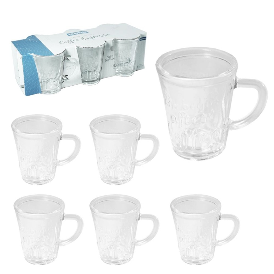2. JOGO 6 CANECAS VIDRO 70ML LUVA