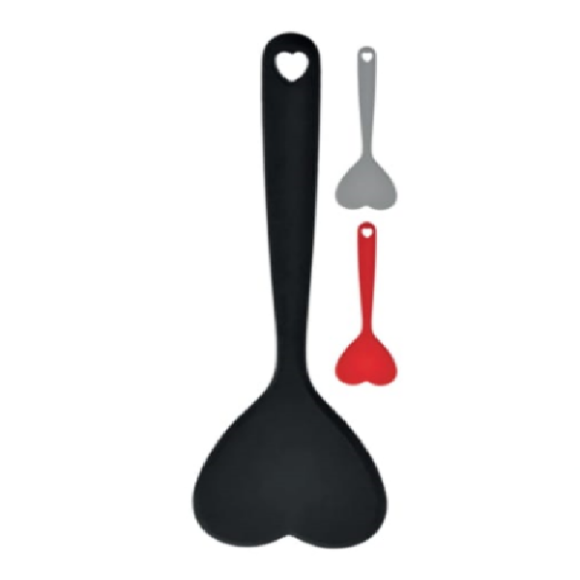 ESPATULA DE SILICONE 31CM CORAÇÃO AZUL/VERMELHA/CINZA
