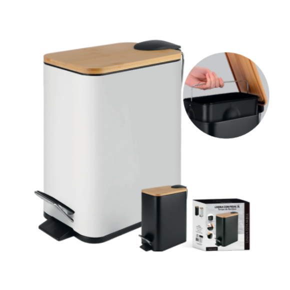 LIXEIRA PEDAL 03L RET TP-BAMBU PRET/BRANCA