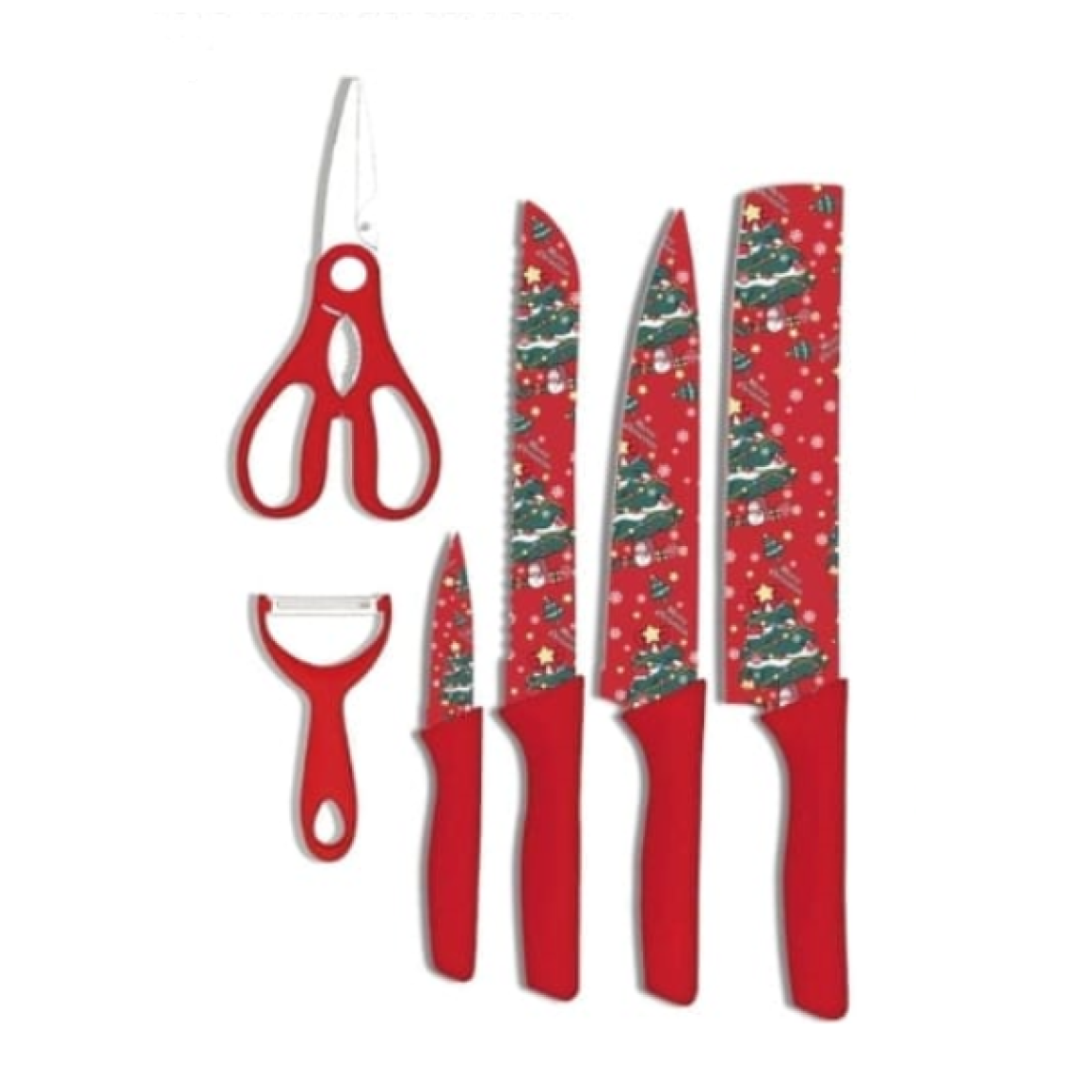 JOGO 6 FACA+TESOURA+DESCASCADOR VERMELHO NATAL