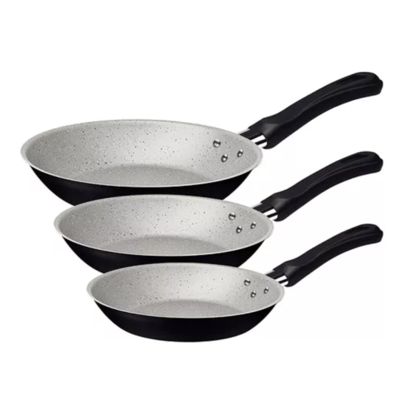 JOGO 3 FRIGIDEIRA ALUMINIO LINZ PRETA/PRATA