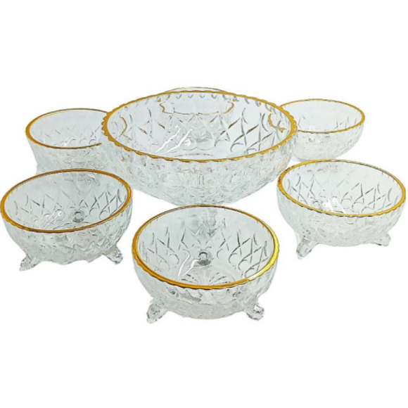 JOGO 7PC VIDRO SOBREMESA 3-PÉS BORDA OURO
