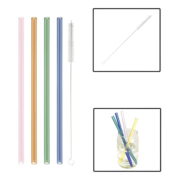 KIT 4 CANUDO VIDRO COLOR + ESCOVA