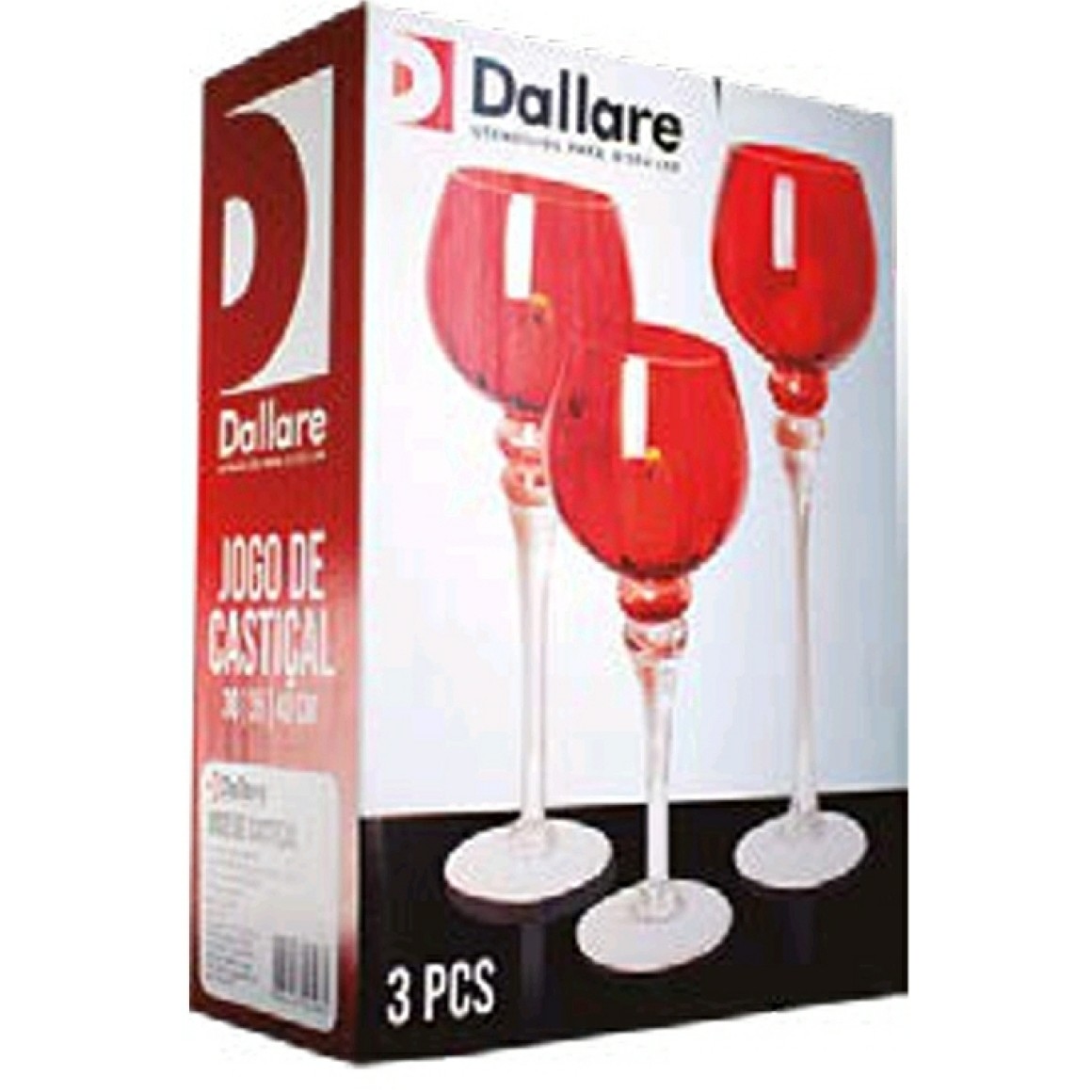 JOGO 3 CASTIÇAL VIDRO 30/35/40CM VERMELHO