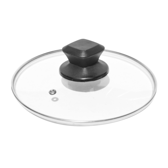 TAMPA VIDRO 18CM PARA PANELA COM PEGADOR BAQUELITE