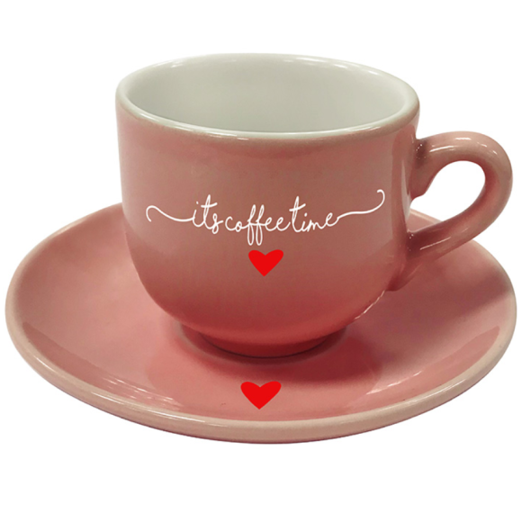 JOGO 06 XICARA+PIRES PORCELANA 90ML LAMOUR ROSA