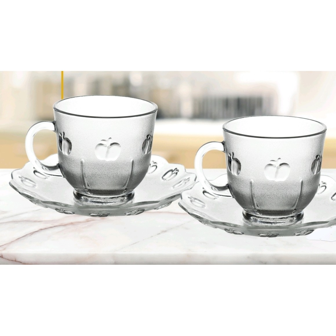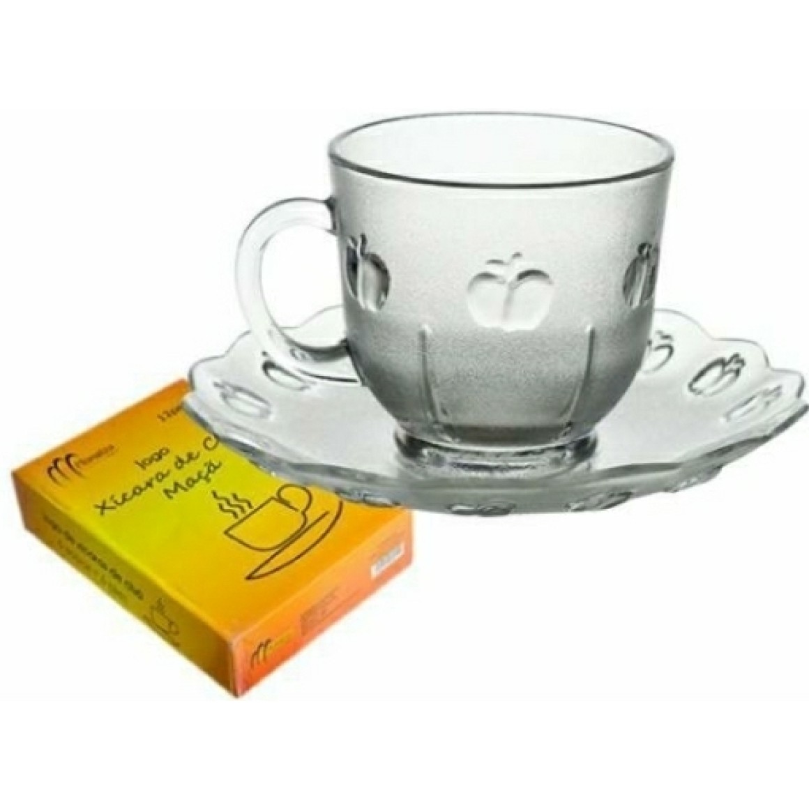 JOGO 6 XICARA CHA VIDRO "MAÇÃ" 2006ML C/PIRES