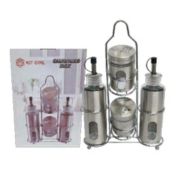 GALHETEIRO INOX C/4 + SUPORTE CROMADO 27X08CM