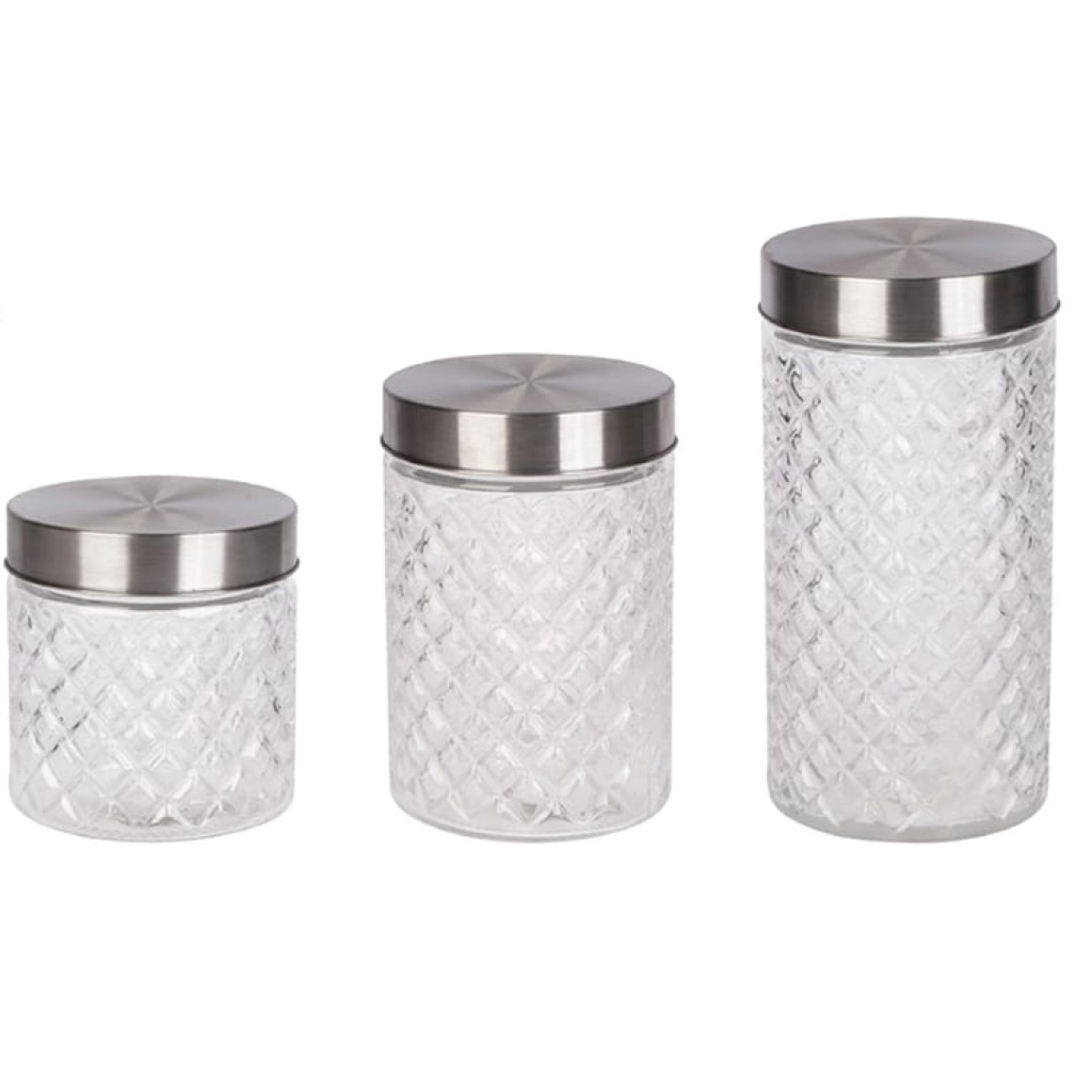 JOGO 3 POTE VIDRO TAMPA INOX