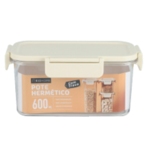 POTE ACRILICO HERMETICO 600ML TP-BEGE