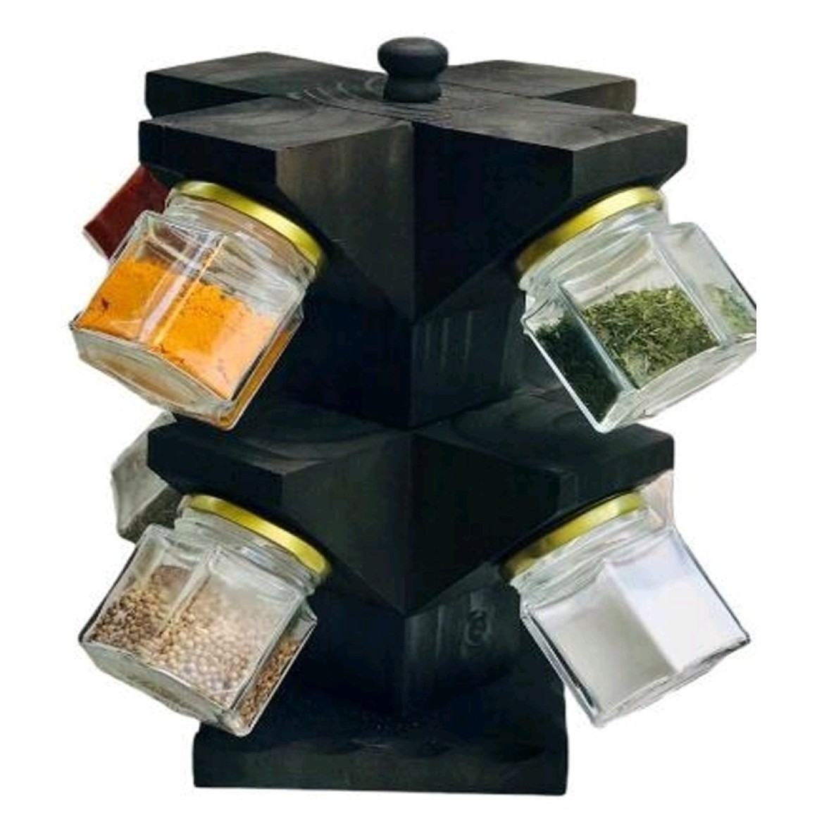 PORTA TEMPERO VIDRO C/4 QUADRADO TAMPA-PRETA + SUPORTE