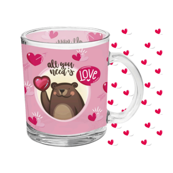 CANECA VIDRO 380ML ESTAMPAS "URSO-FRASE"